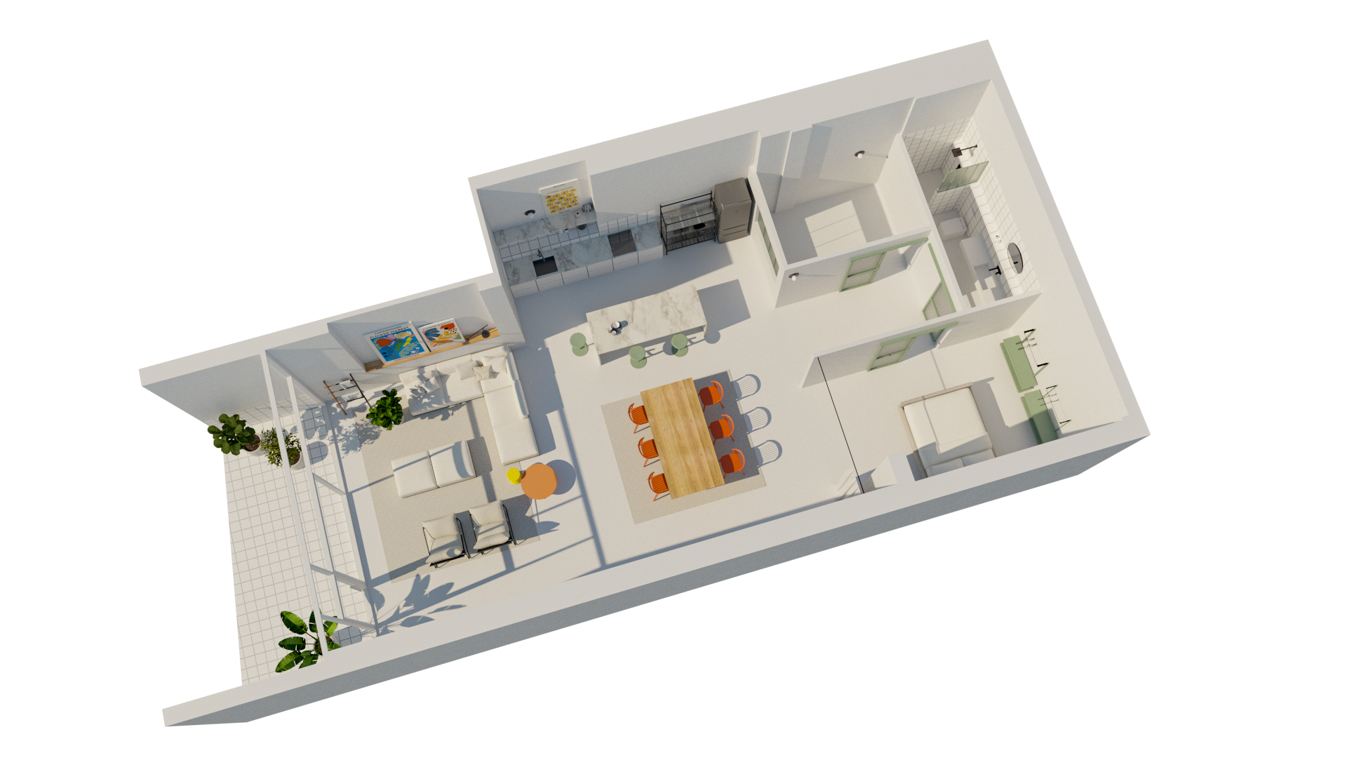En conjunto, el proyecto apuesta por la apertura, la flexibilidad y la incorporación de elementos naturales como herramientas para cualificar un espacio originalmente limitado por su condición de planta baja urbana, convirtiéndolo en un alojamiento acogedor, luminoso y conectado con la naturaleza.